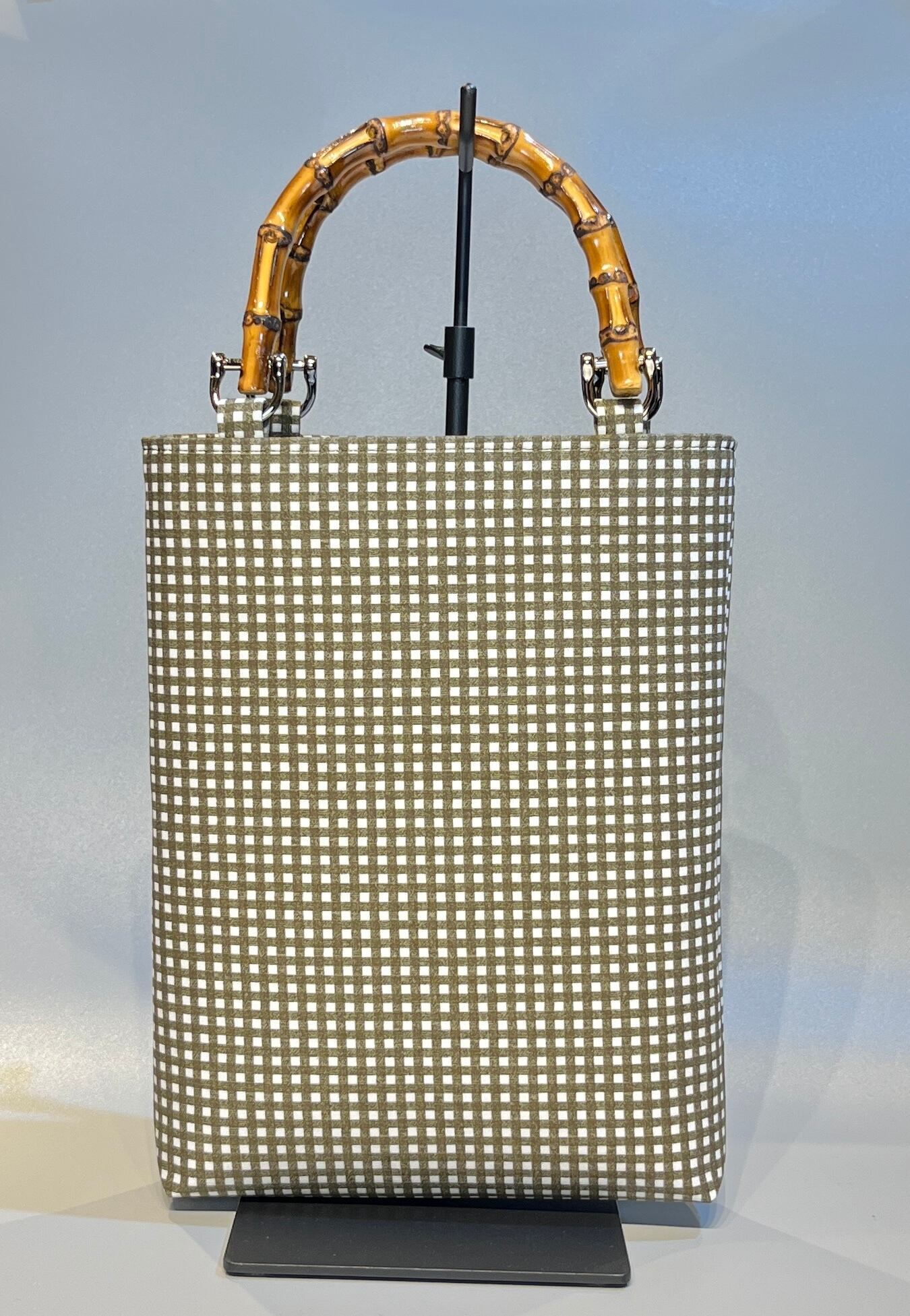 竹持手バッグ (小) 縦型 #綿生地 角通 抹茶色
