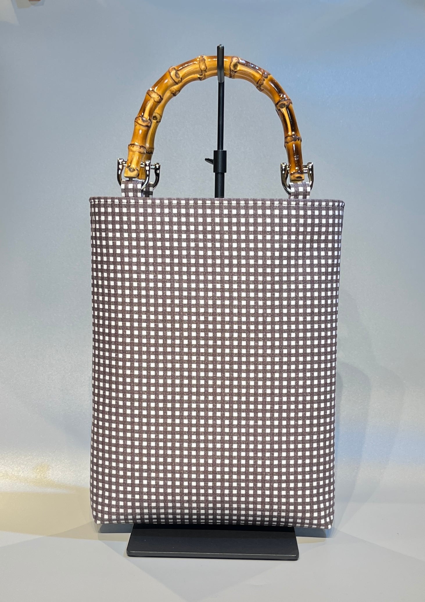 竹持手バッグ (小) 縦型 #綿生地 角通 茶色
