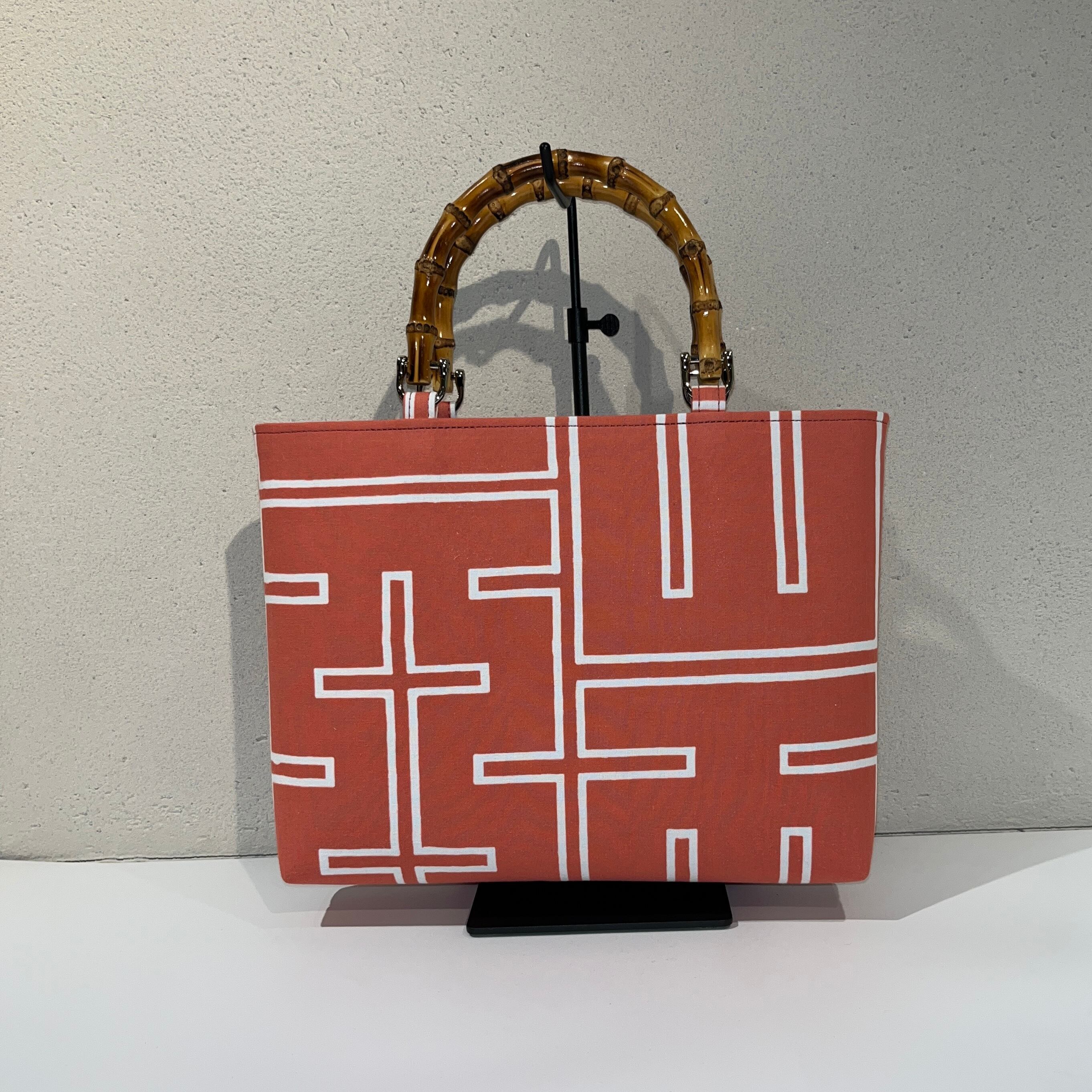 今までのフォルムを変えずに細部にわたる縫製の見直しを行い型崩れしずらくなりました。芯地等をさらに進化させ耐久性もアップ致しました。底マチ部分がすっきりと角ばったシンプルな形、祭支度のみならず和装洋装に幅広くお使いいただけます。 素 材/本体 綿100% 持手 天然竹 サイズ/縦約23cm 横約32cm 底マチ約5.5cm カラー/珊瑚色地に白色柄 ※内側ポケット1か所有り