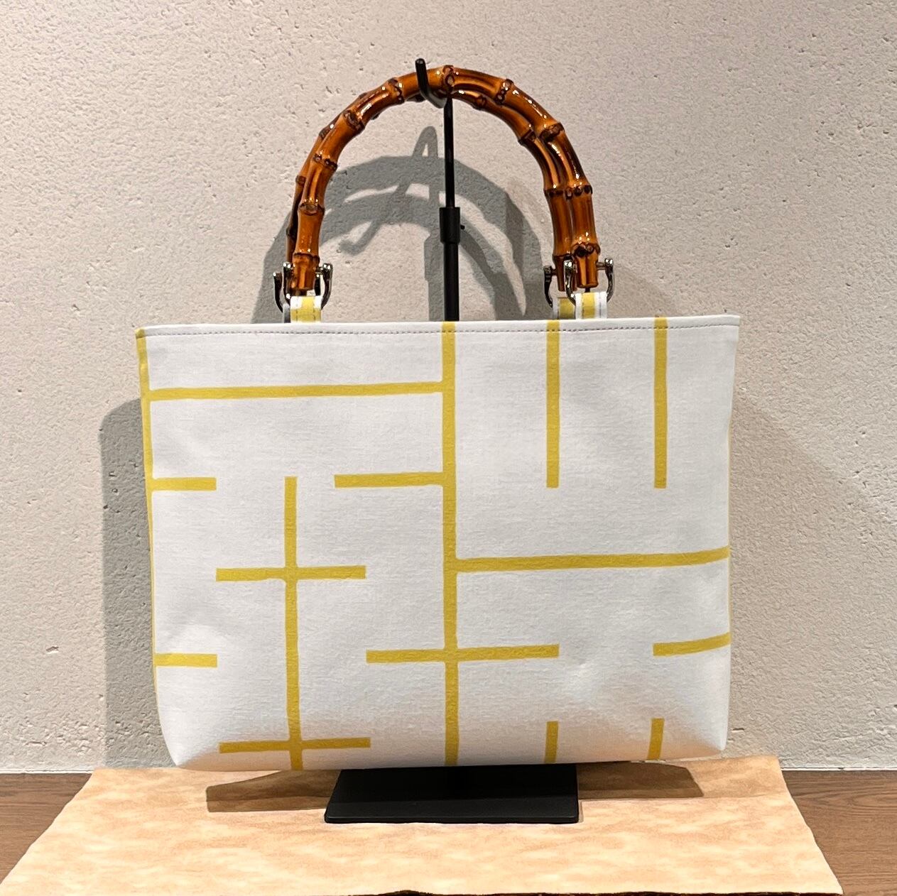 竹持手バッグ横型 #端(白色地に柳色柄)