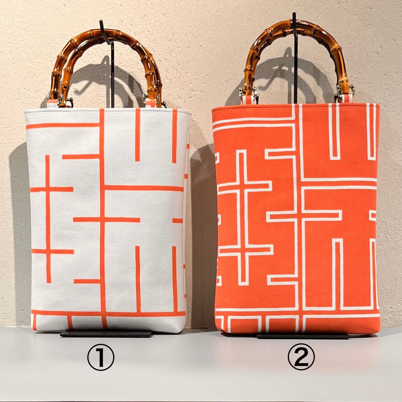 竹持手バッグ縦型 #端 珊瑚色