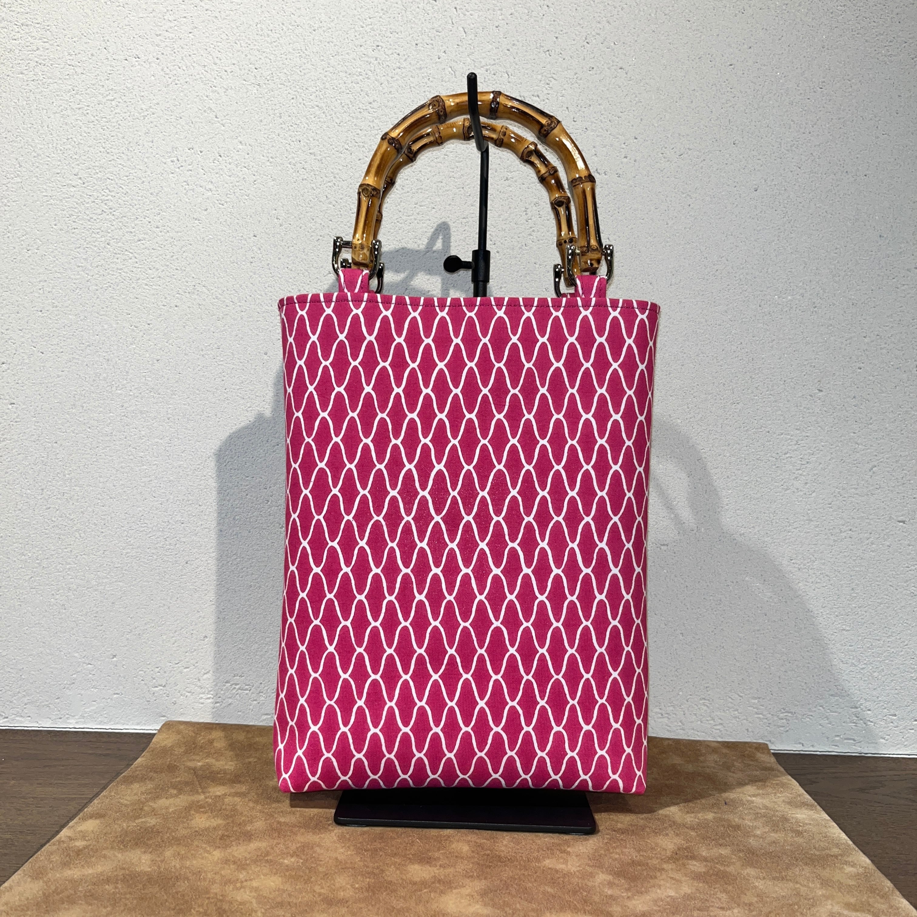 竹持手バッグ(小)縦型 #網柄 ピンク色