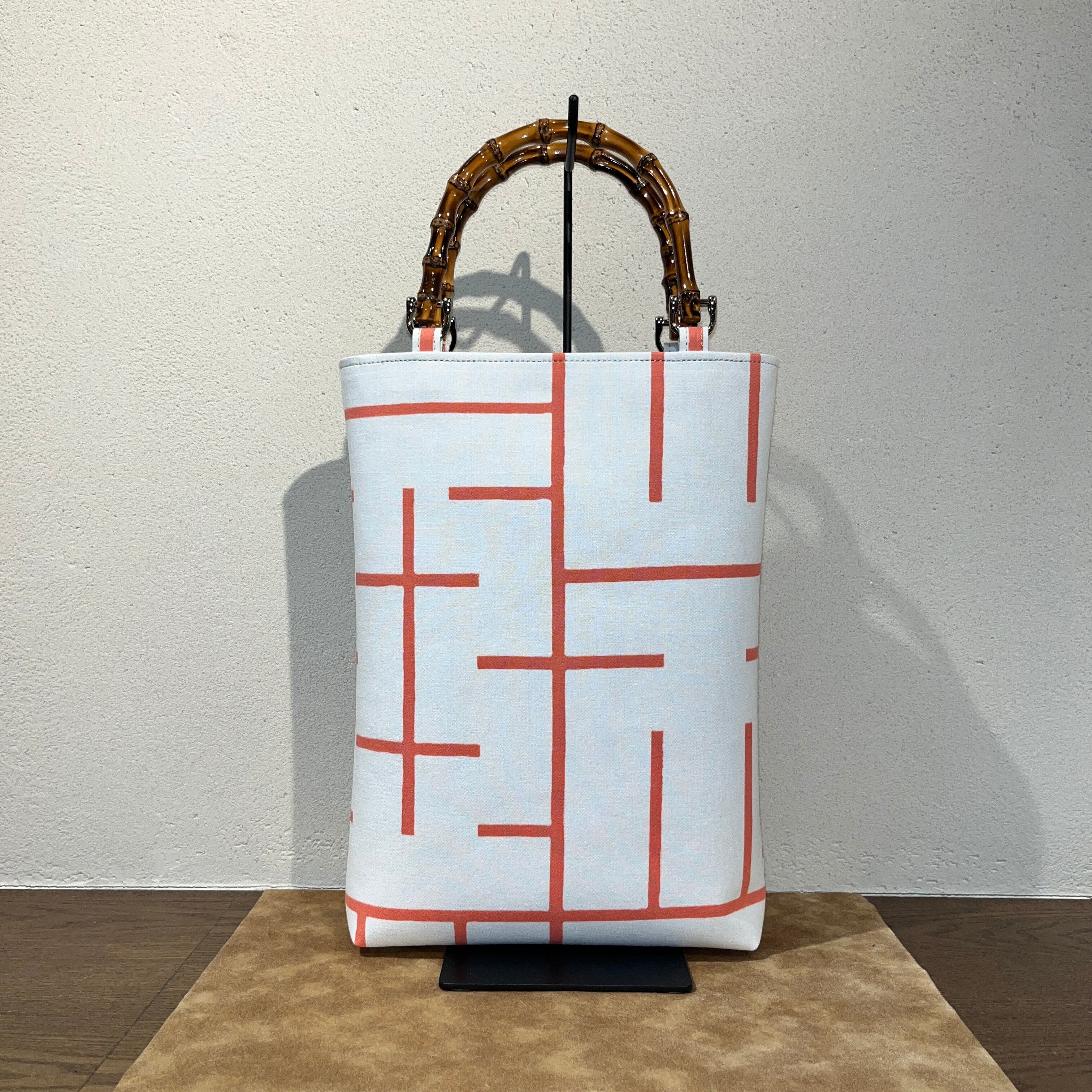 今までのフォルムを変えずに細部にわたる縫製の見直しを行い型崩れしずらくなりました。芯地等をさらに進化させ耐久性もアップ致しました。底マチ部分がすっきりと角ばったシンプルな形、祭支度のみならず和装洋装に幅広くお使いいただけます。 素 材/本体 綿100% 持手 天然竹 サイズ/縦約32cm 横約23cm 底マチ約5.5cm カラー/珊瑚色 ※内側ポケット1か所有り