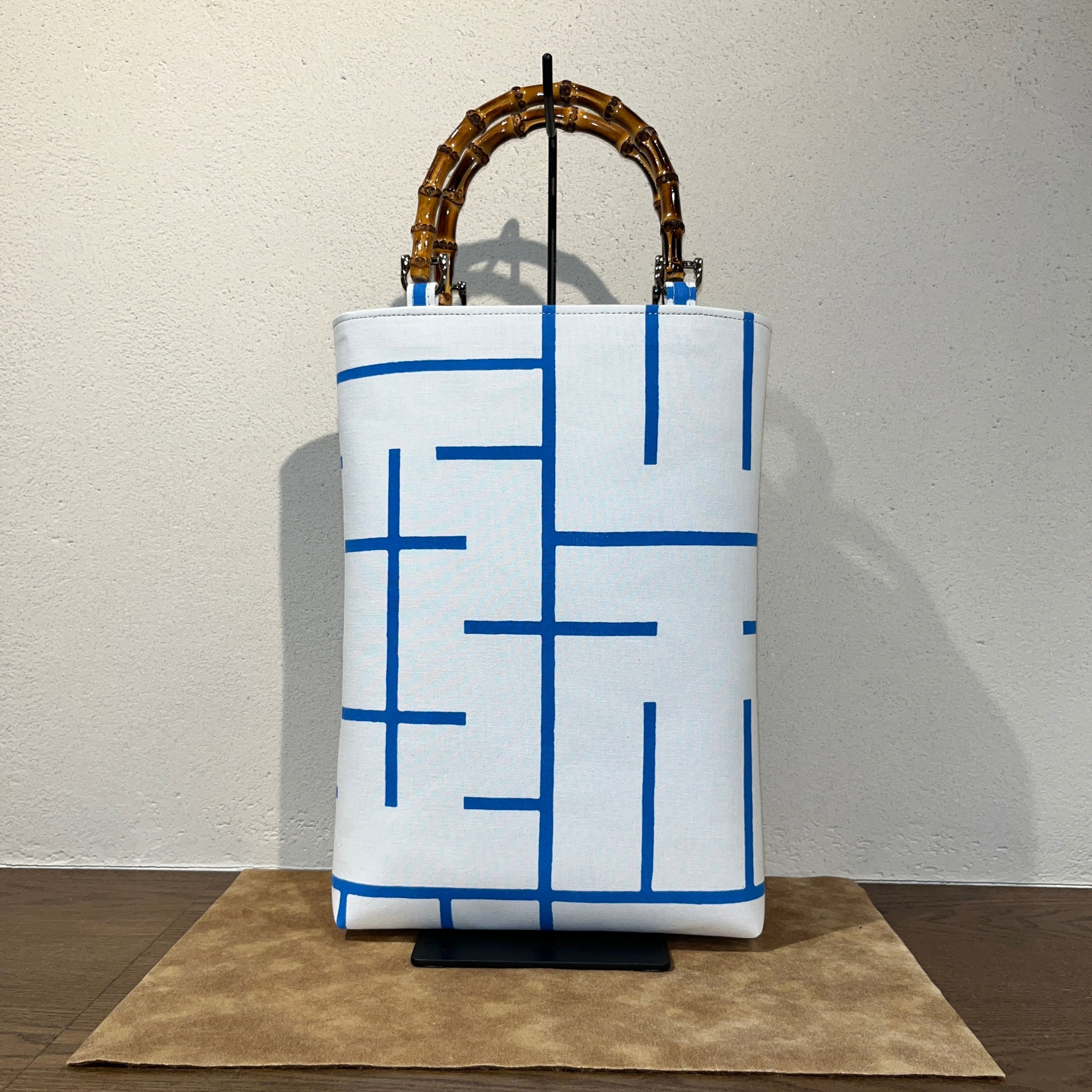 今までのフォルムを変えずに細部にわたる縫製の見直しを行い型崩れしずらくなりました。芯地等をさらに進化させ耐久性もアップ致しました。底マチ部分がすっきりと角ばったシンプルな形、祭支度のみならず和装洋装に幅広くお使いいただけます。 素 材/本体 綿100% 持手 天然竹 サイズ/縦約32cm 横約23cm 底マチ約5.5cm カラー/青色 ※内側ポケット1か所有り