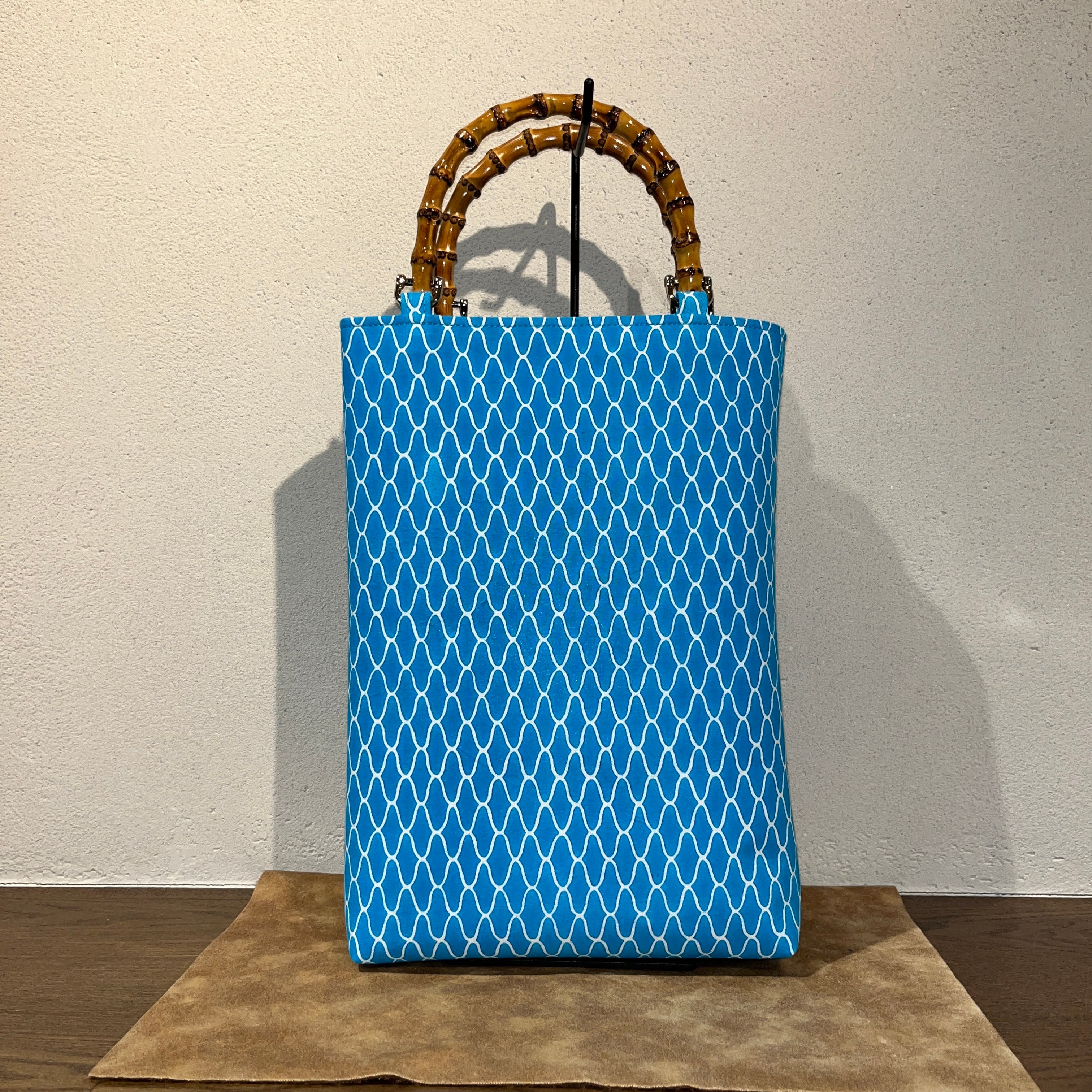 竹持手バッグ縦型 #網柄 青色