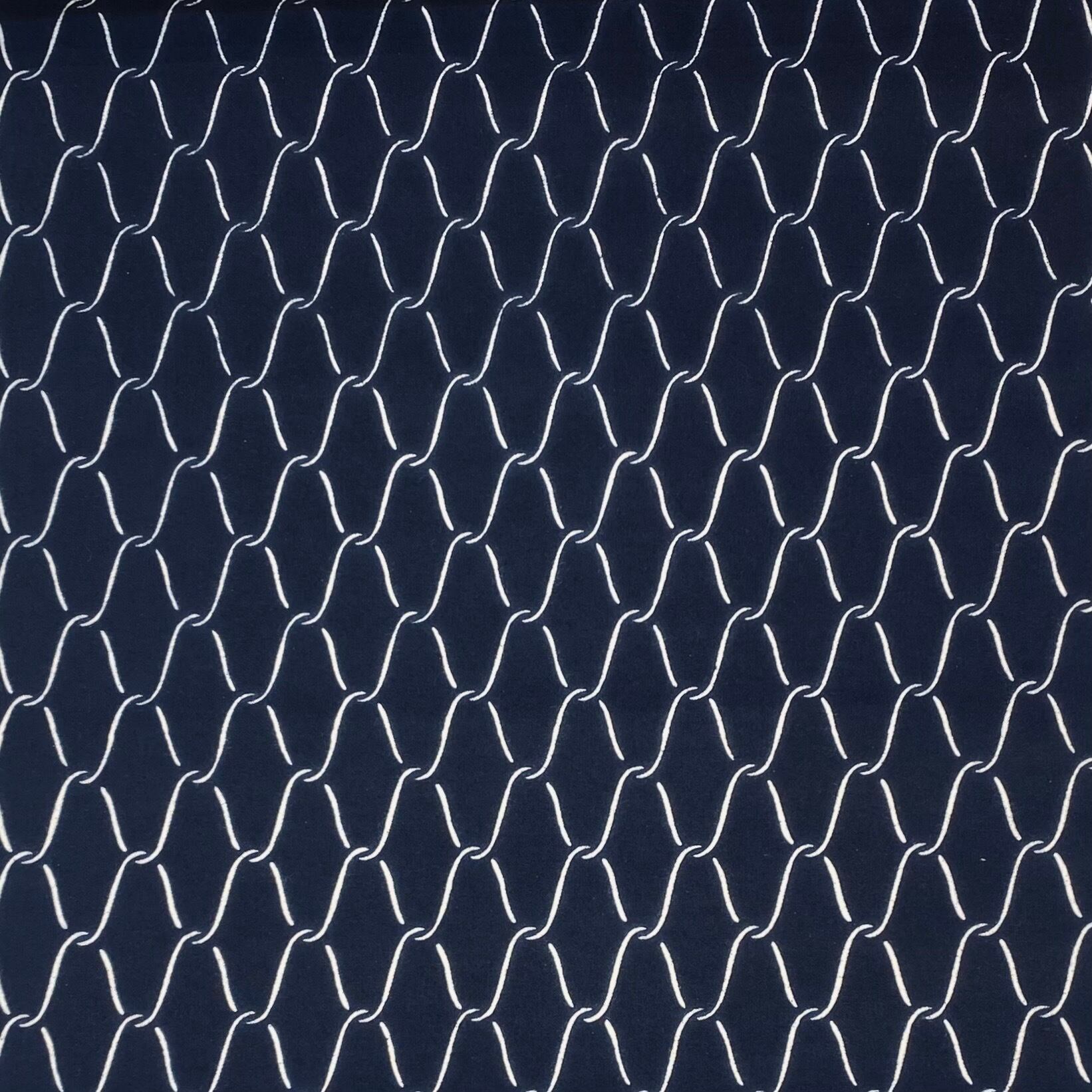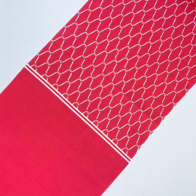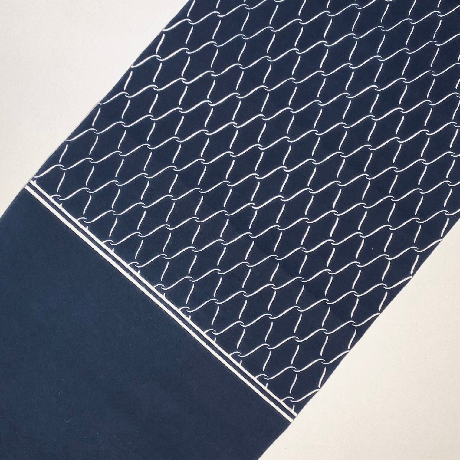 綿引き染めの三尺帯、昔ながらの技法にこだわって製作致しました。両端に無地場が約45㎝づつあります、小粋に結んで下さい。 素 材/綿 サイズ/総長約3m・幅約34cm カラー/紺色地に白柄