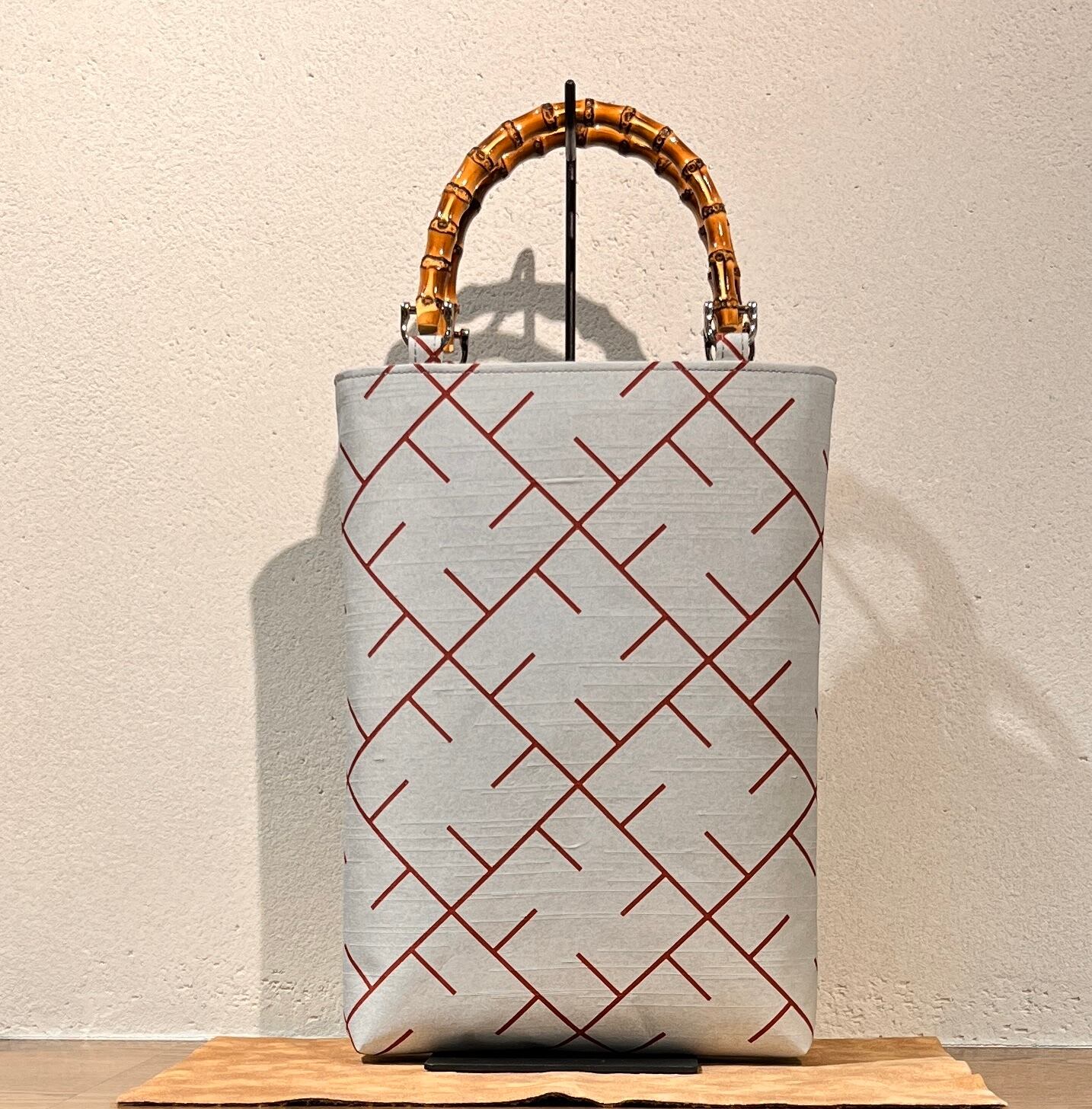 竹持手バッグ縦型 #卍L格子(臙脂色柄)