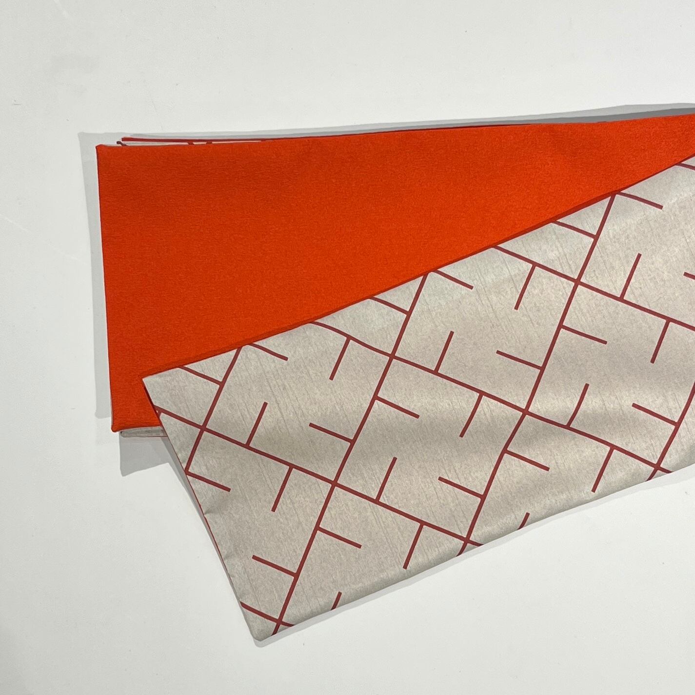 適度なシボで高級感のある紬、どんな色柄の半纏にもしっくりと馴染みます。扱いやすいポリエステル製です。 素 材/紬 ポリエステル サイズ/総長約3m・幅約19cm前後 カラー/灰色地にエンジ色柄・エンジ色裏