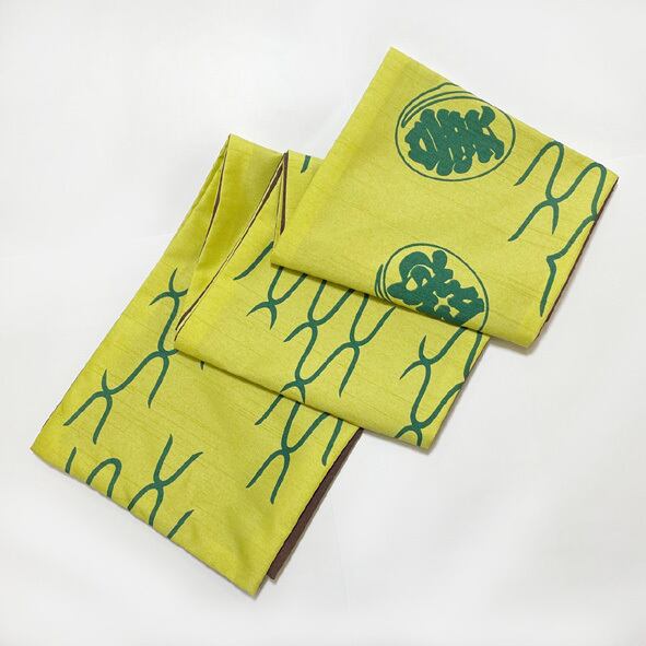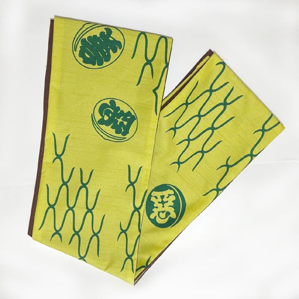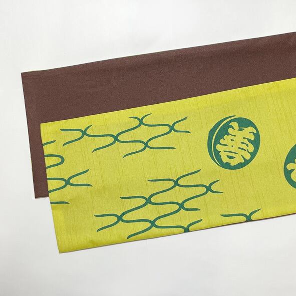 適度なシボで高級感のある紬、どんな色柄の半纏にもしっくりと馴染みます。扱いやすいポリエステル製です。 素 材/紬 ポリエステル サイズ/総長約3m・幅約19cm前後 カラー/緑色地に茶色裏