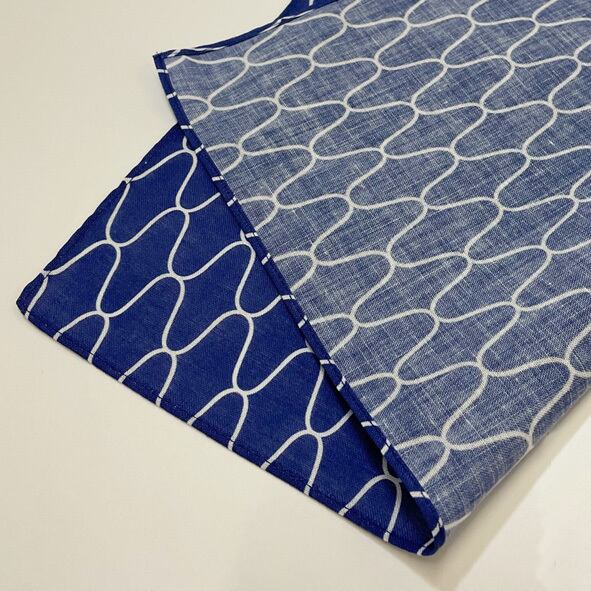 さらりとした軽い使い心地、薄手で乾きの良い綿コンパス地を使用致しました。 素 材/綿100% サイズ/H30cm×W30cm カラー/紺地に白色柄