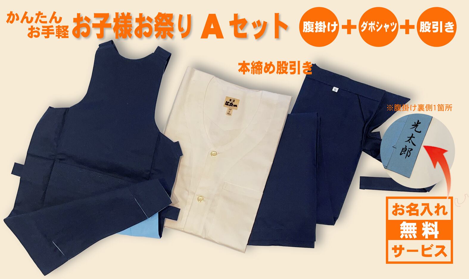 お子様お祭りAセット(シャツ、腹掛け、股引)