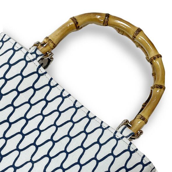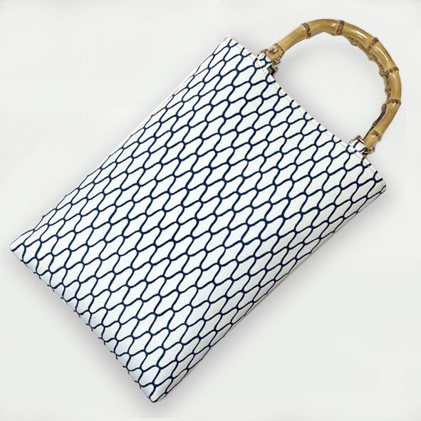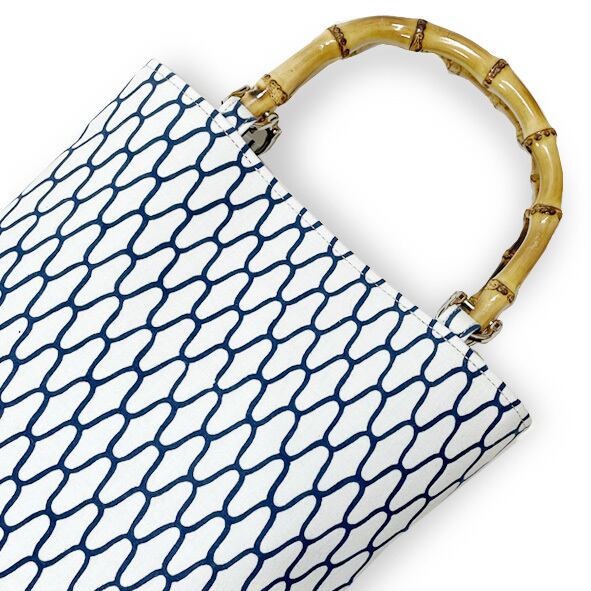 竹持手バッグ縦型 #網柄(白地に紺色柄)