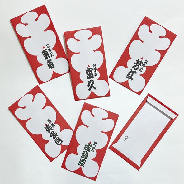 当店オリジナル柄のぽち袋です。ちょっとした心付けに重宝します。小粋な普段使いに是非どうぞ。地名+お名前(屋号)、小粋な勘亭流文字でキメてください。